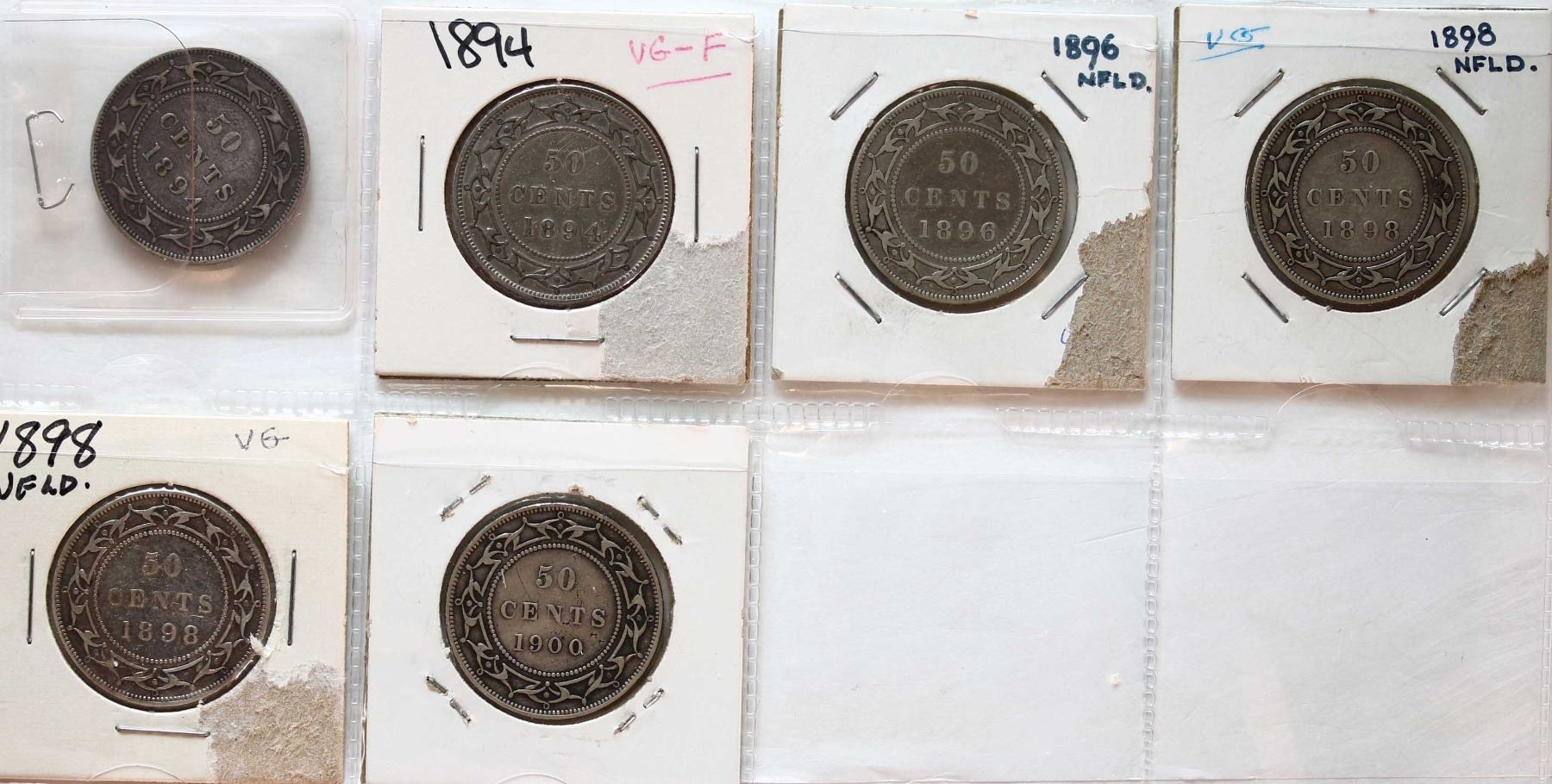 Nfld; 1894-1900 50¢ VG to VF, Lot of 6 pieces.