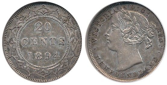 Nfld 1894 20¢ NGC AU50. Lightly toned.