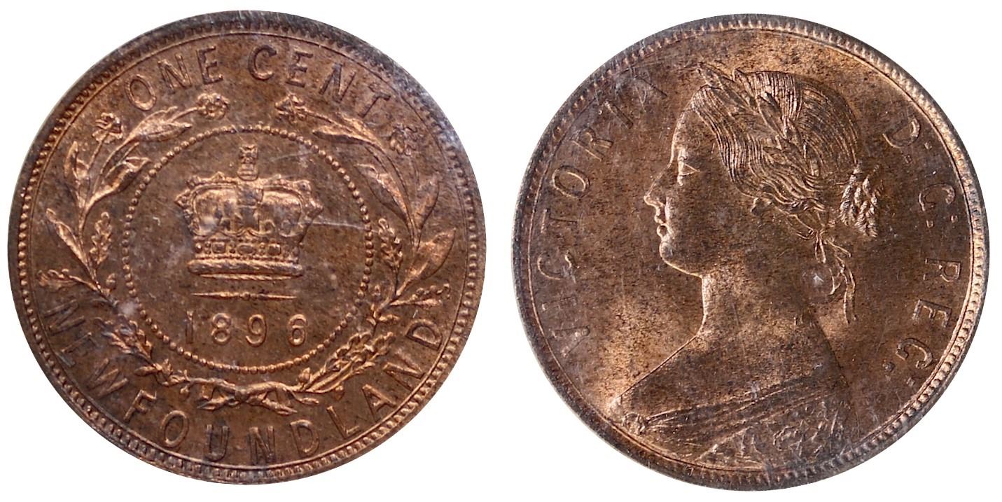 Nfld; 1896 1¢ ICCS Gem Mint State-65RD. Gem 90% red and lustrous issue, should designate the Wide Date variety..