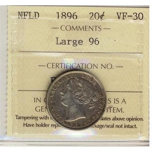 Nfld 1896 20¢ Large 96 ICCS VF30.
