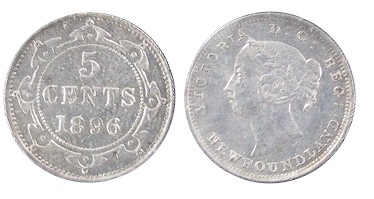 Nfld 1896 5¢ ICCS AU58. Nice type coin.
