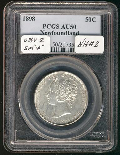 Nfld 1898 50¢ PCGS AU50, Obv 2, SmW, though not designated.