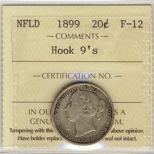 Nfld 1899 20¢ Hook 9's ICCS F12.