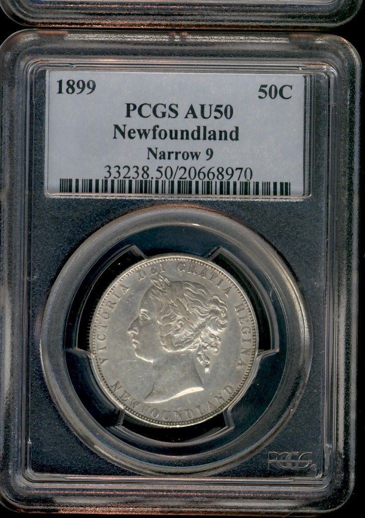 Nfld 1899 50¢ Nar 9 PCGS AU50.