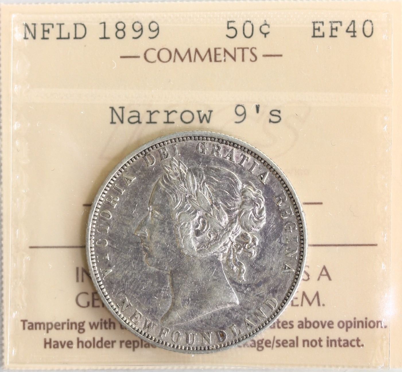 Nfld; 1899 50¢ "Narrow 9's" ICCS Extra Fine-40, Lightly toned with lustrous surfaces.