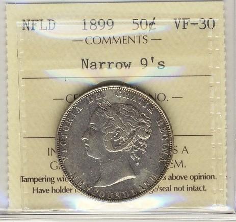 Nfld 1899 50¢ Narrow 9's ICCS VF30,