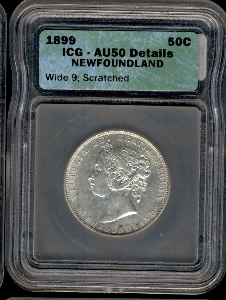Nfld 1899 50¢ W9 ICG AU50 Details. Designated as Scratched.