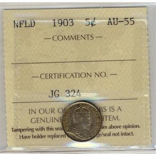 Nfld 1903 5¢ ICCS AU55. Underrated issue in this grade.