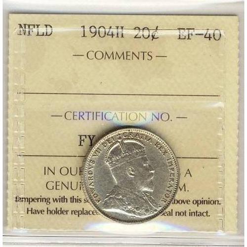 Nfld 1904H 20¢ ICCS EF40.