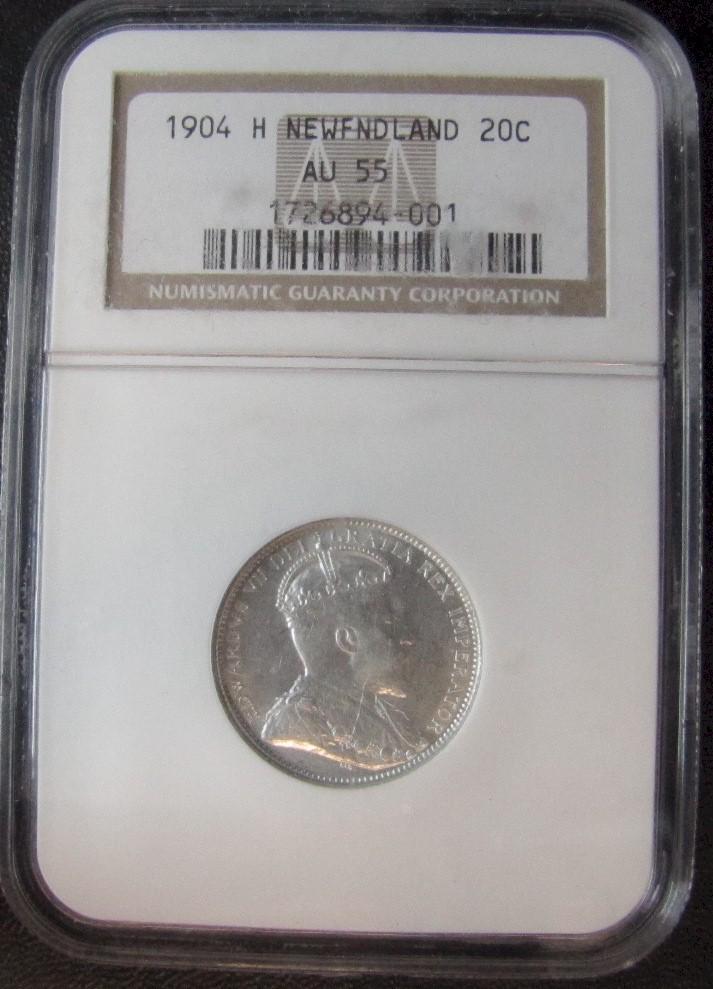 Nfld 1904H 20¢ NGC AU55.
