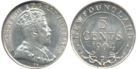 Nfld 1904H 5¢ PCGS MS64. Gem blast white.