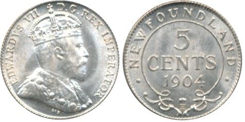 Nfld 1904H 5¢ PCGS MS64. Gem blast white.