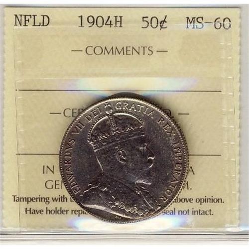 Nfld 1904H 50¢ ICCS MS60. Nice tone and lustre.