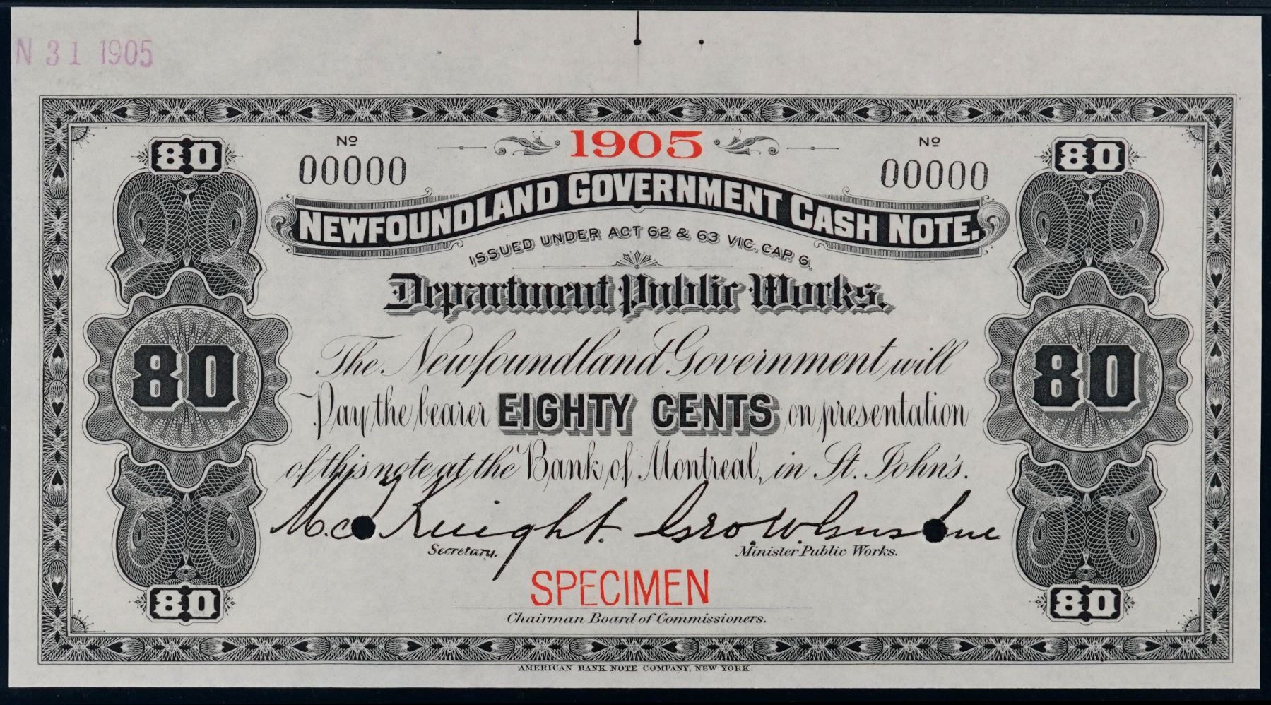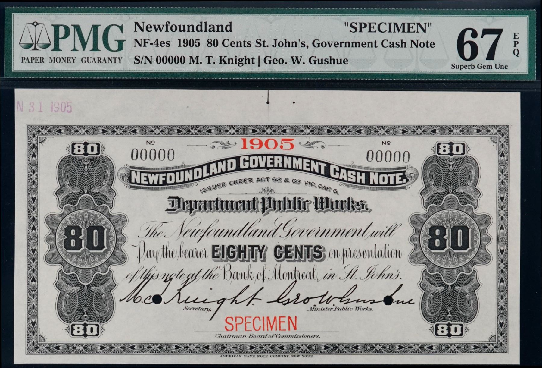 Nfld 1905 80¢ NF-4eS Specimen #00000 PMG Superb Gem Uncirculated-67EPQ