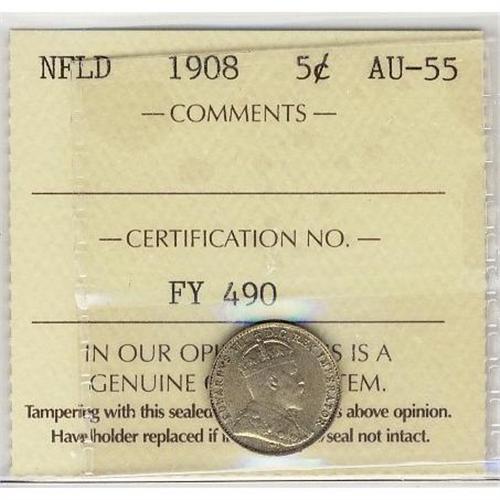 Nfld 1908 5¢ ICCS AU55.