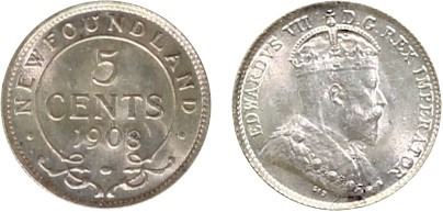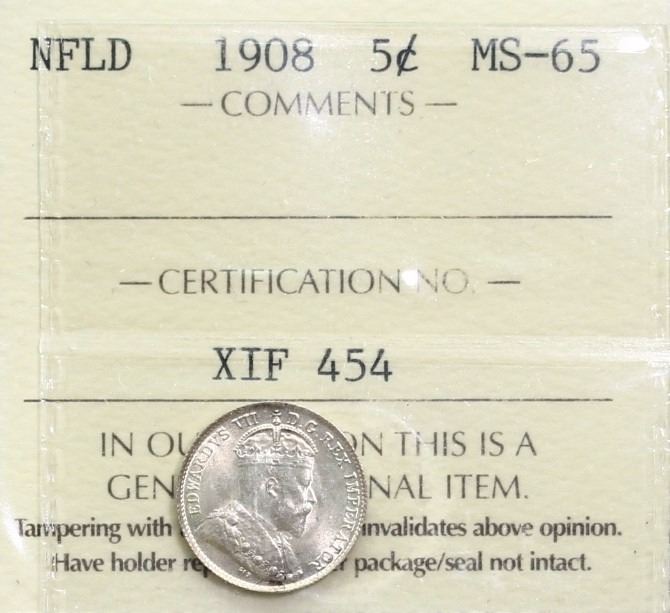 Nfld 1908 5¢ ICCS Gem Mint State-65