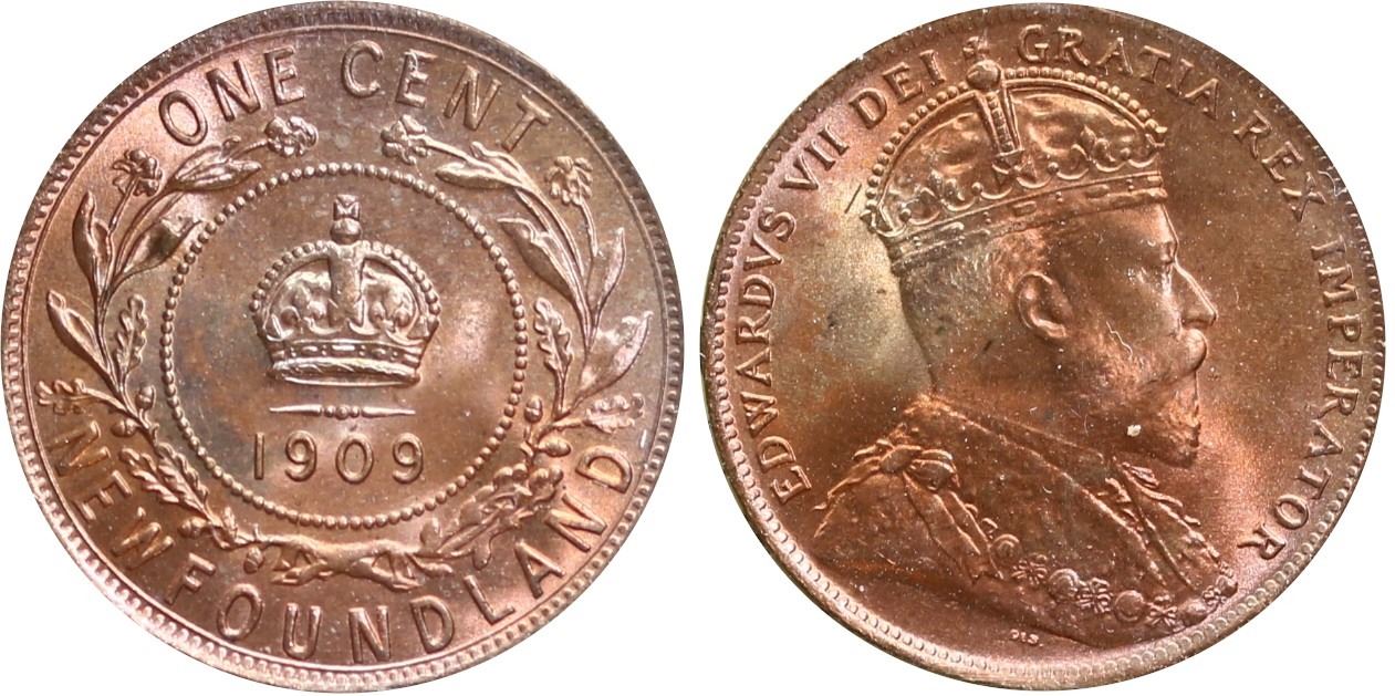 Nfld; 1909 1¢ ICCS Superb Gem Mint State-67 Full blazing Red - 100% Red lustre. Simply a beauty!