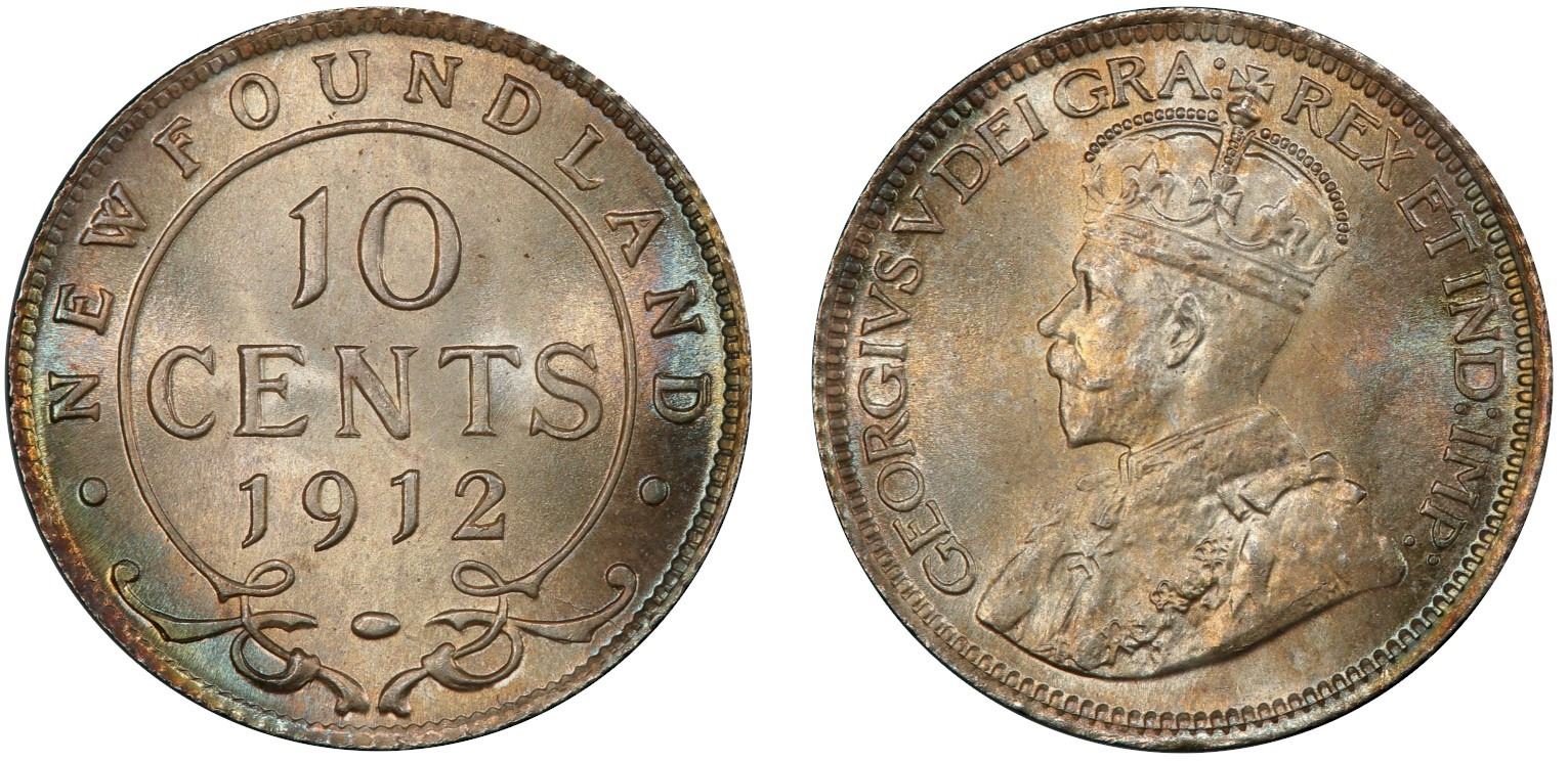 Nfld 1912 10¢ PCGS Superb Gem Mint State-67 This is a Pristine issue with great eye appeal and superb fields. A stunning issue.