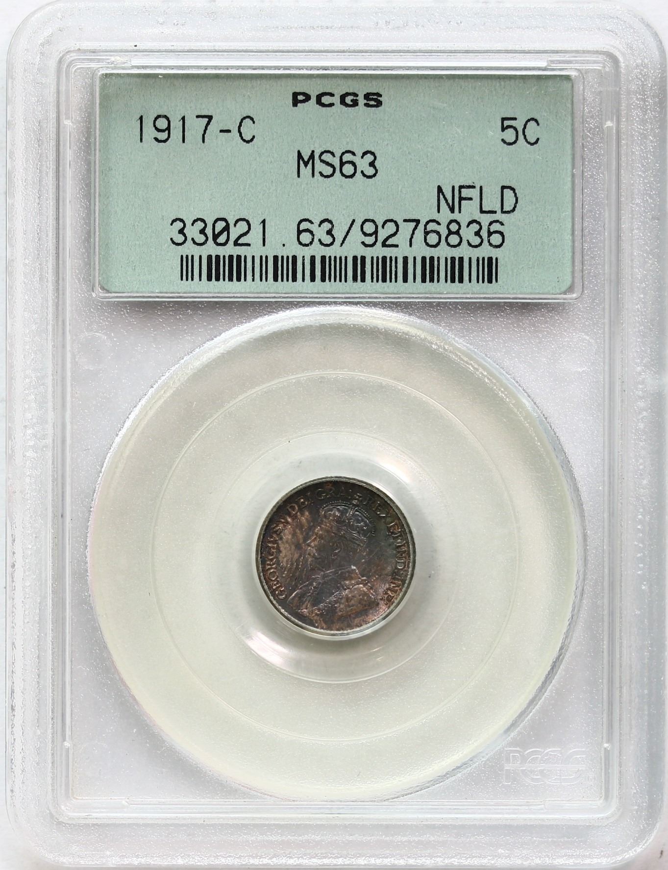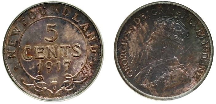 Nfld 1917 5¢ PCGS Choice Mint State-63 Attractively toned.