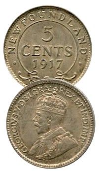 Nfld 1917C 5¢ CCCS MS63, lightly toned. A scarce date in choice mintstate.