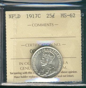 Nfld 1917c 25¢ ICCS MS62. Lustrous white issue.