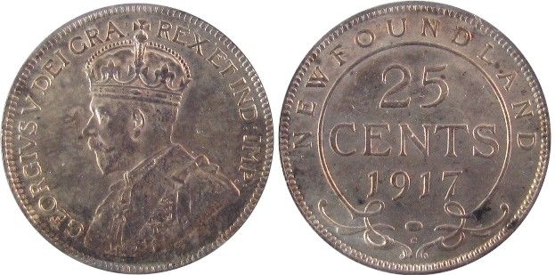 Nfld 1917c 25¢ ICCS MS64. Strong lustre.