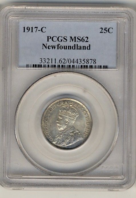 Nfld 1917c 25¢ PCGS MS62. Crisp eye appeal.