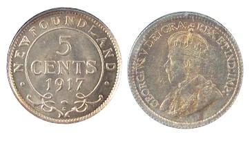 Nfld 1917c 5¢ ICCS MS64, light pink and golden tones. A superb example. Near GEM!