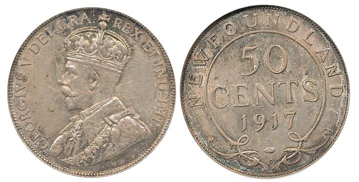 Nfld 1917c 50¢ NGC AU58. Attractvie with strong lustre.