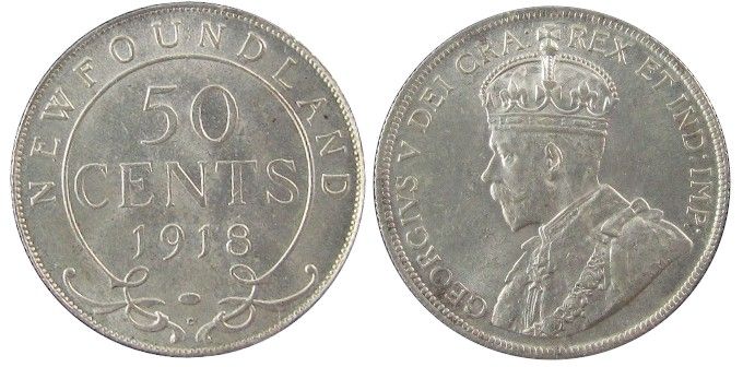 Nfld 1918c 50¢ ICCS MS65, fully brilliant and lustrous. Scarce this nice.