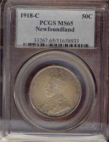 Nfld 1918c 50¢ PCGS MS65PQ+. Outstanding strike. Excellent eye appeal with lovely toning.
