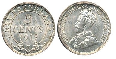Nfld 1919-C 5¢ PCGS MS65 Tied for finest graded.