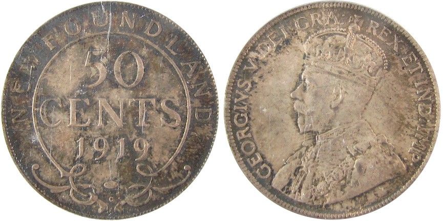Nfld 1919C 50¢ PCGS MS-64. Very nice toning.