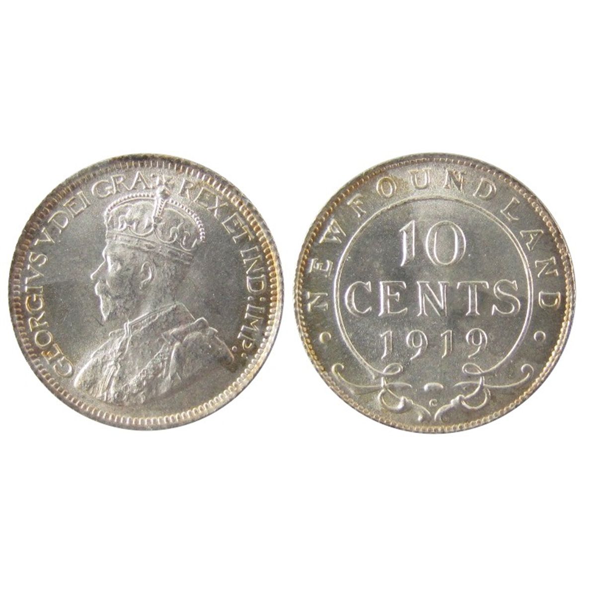 Nfld 1919c 10¢ ICCS MS66. Superbly struck example with amazing lustre. Very flashy.