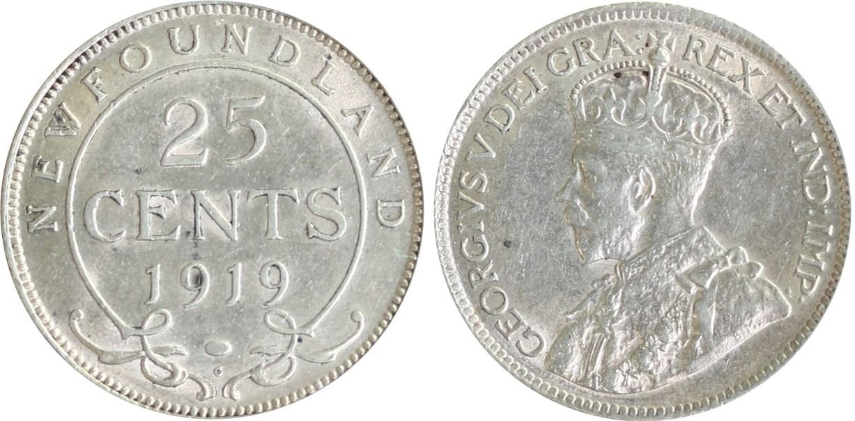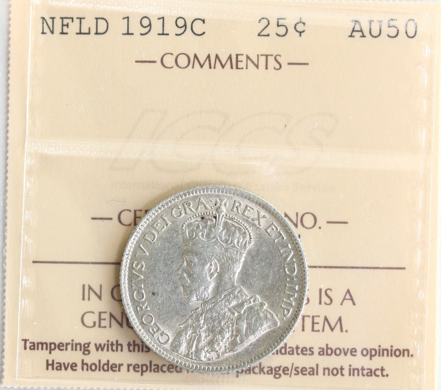 Nfld; 1919c 25¢ ICCS About Uncirculated-50
