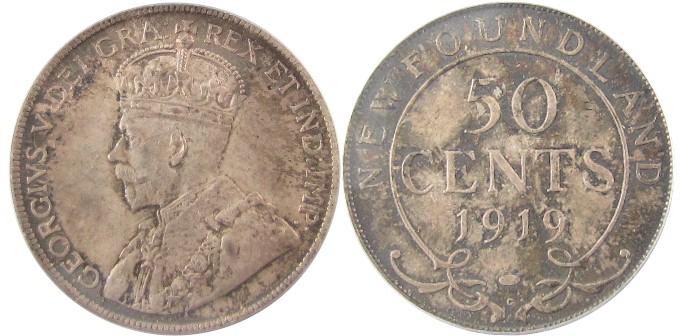 Nfld 1919c 50¢ PCGS MS64, attractively toned. Very nice example.