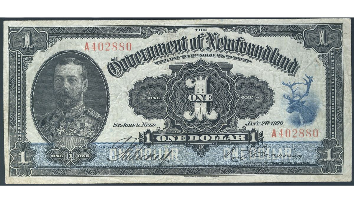 Nfld; 1920 $1 NF-12b #A402880 PMG VF25.