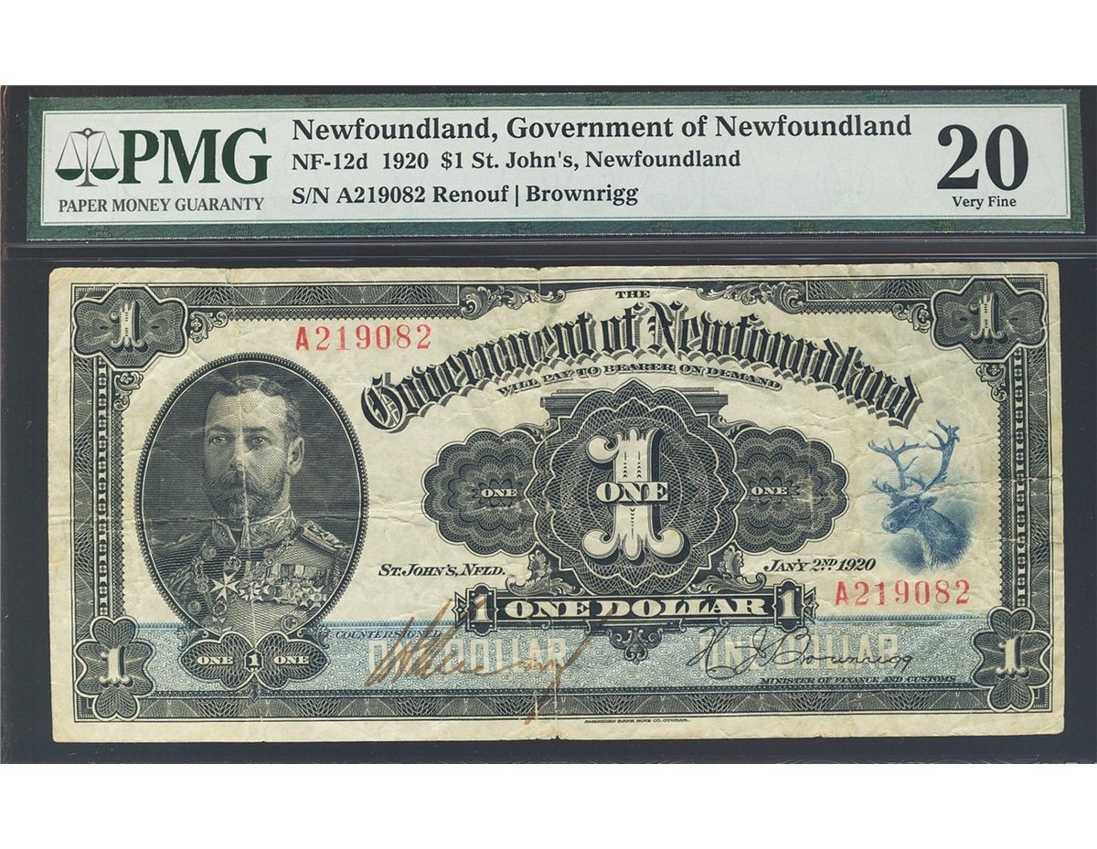Nfld 1920 $1 NF-12d #A219082 PMG VF20.