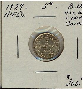 Nfld 1929 5¢ Sharp BU issue with just a hint of gold shade.