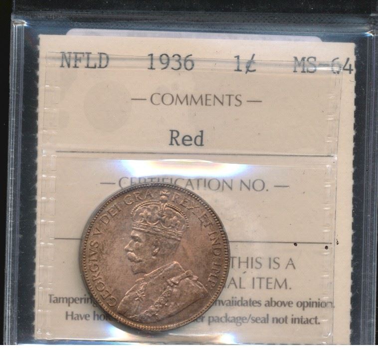 Nfld 1936 1¢ ICCS MS64 RED. 70% Red.