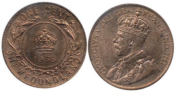 Nfld 1936 1¢ ICCS MS64RD. 90% red with lustre.