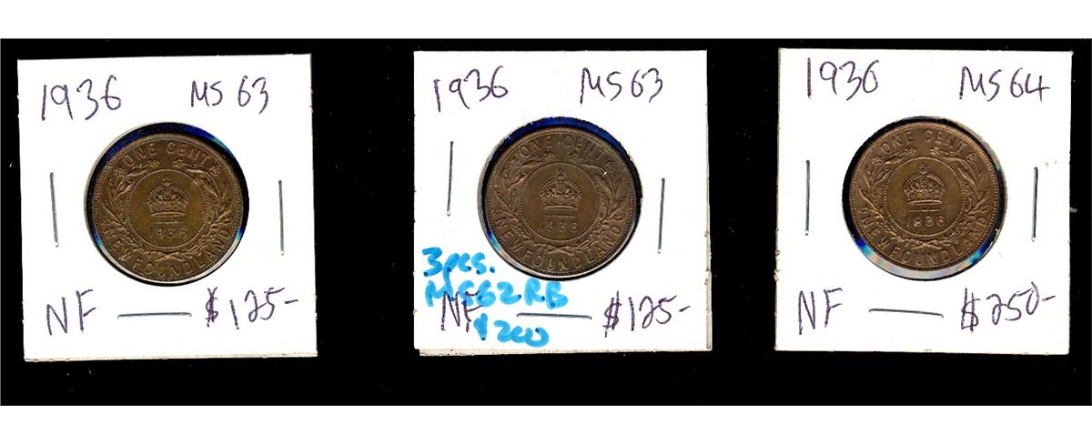 Nfld 1936 1¢. Lot of 3 coins MS62RB.