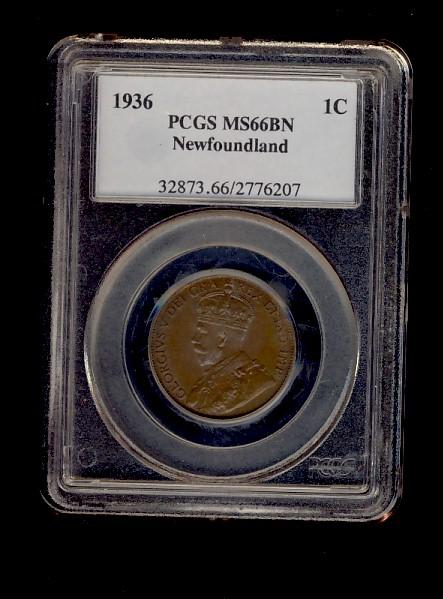 Nfld 1936 1¢ PCGS MS66BN.