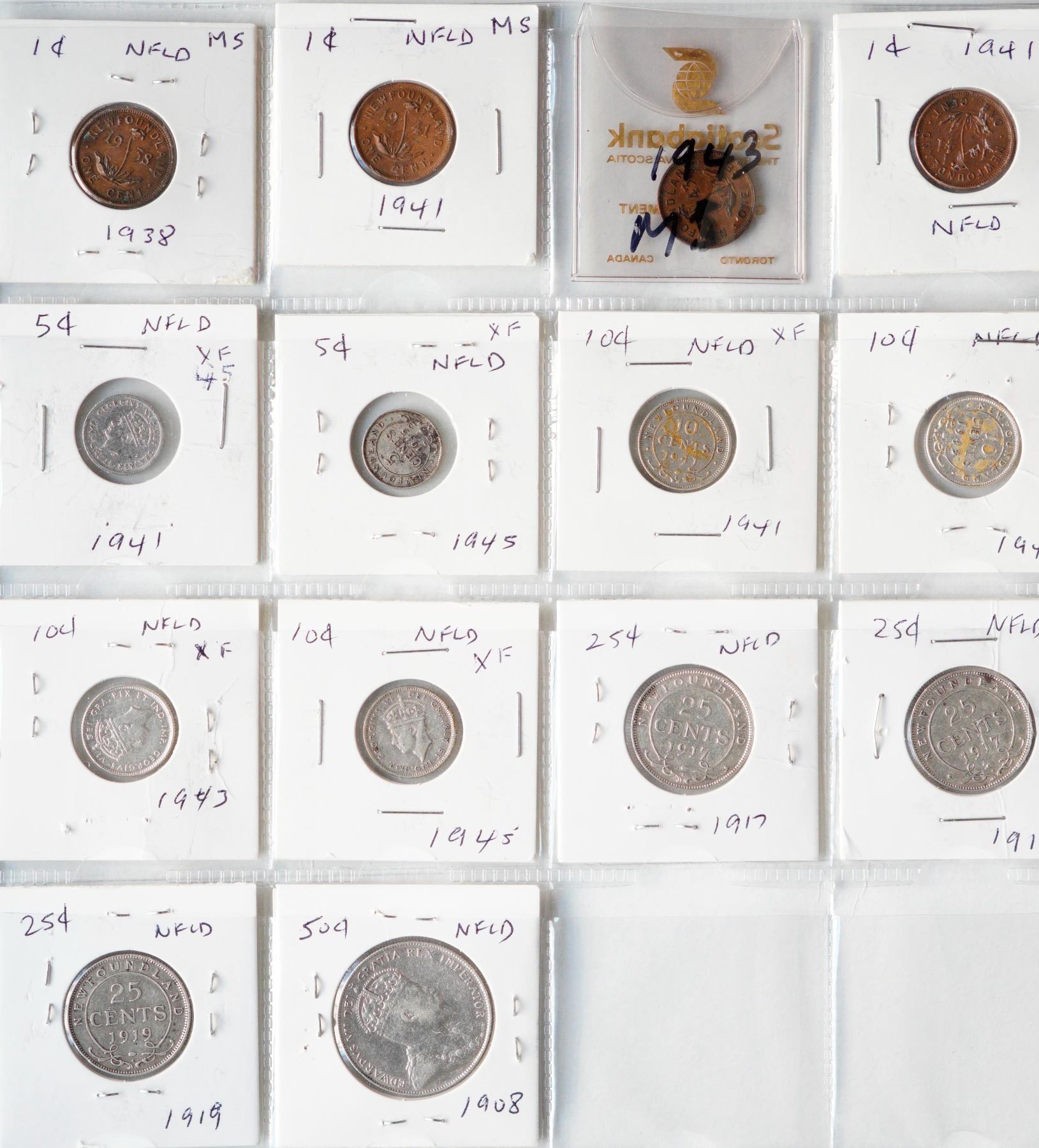 Nfld; 1938 1¢ to 1943(4), 5¢ 1941c, 1945c, 10¢ 1941c, 1943c(2), 1945c, 25¢ 1917c(2), 1919c & 50¢ 190