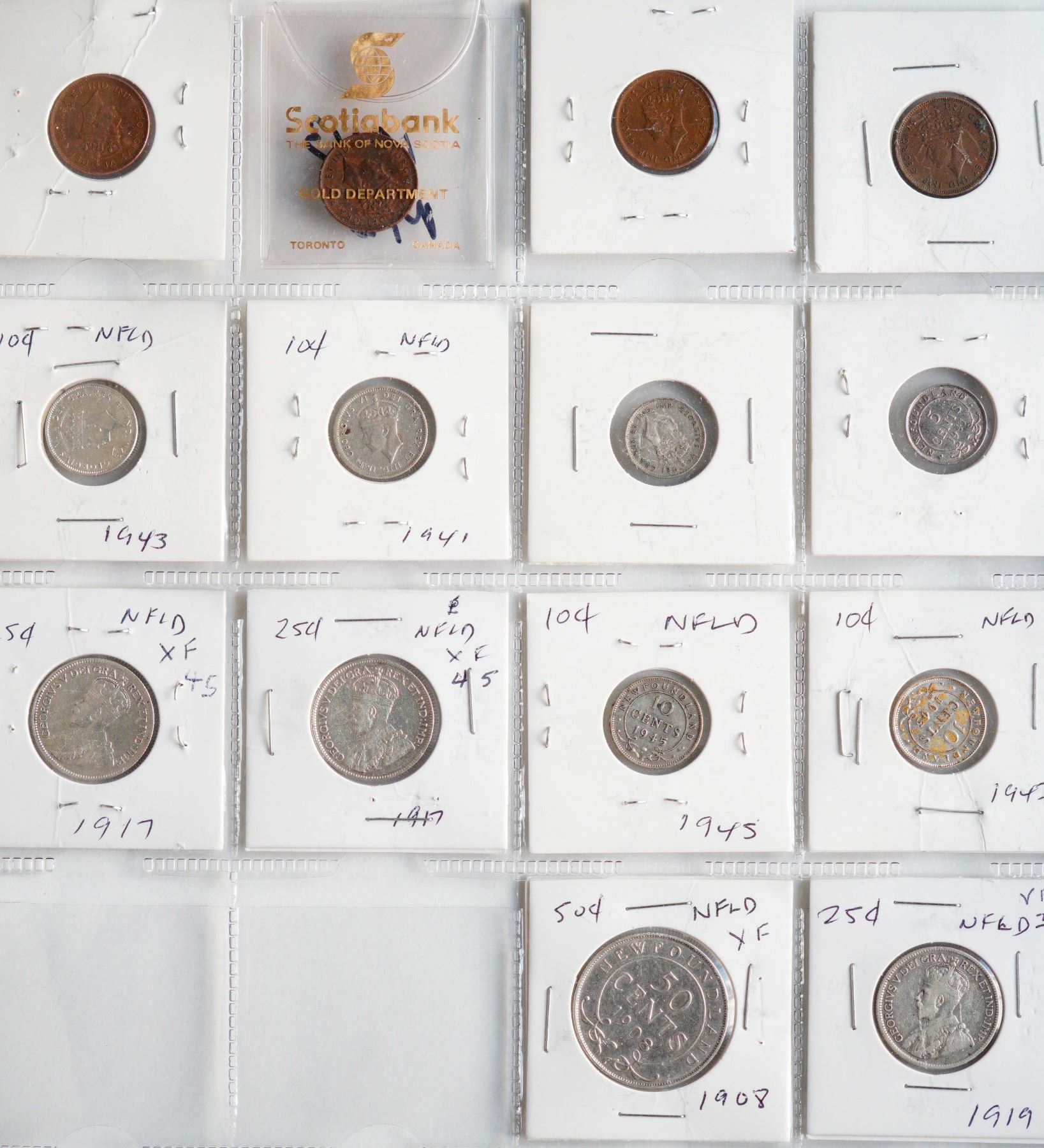 Nfld; 1938 1¢ to 1943(4), 5¢ 1941c, 1945c, 10¢ 1941c, 1943c(2), 1945c, 25¢ 1917c(2), 1919c & 50¢ 1908. Lot of 14 pcs Fine to EF average.