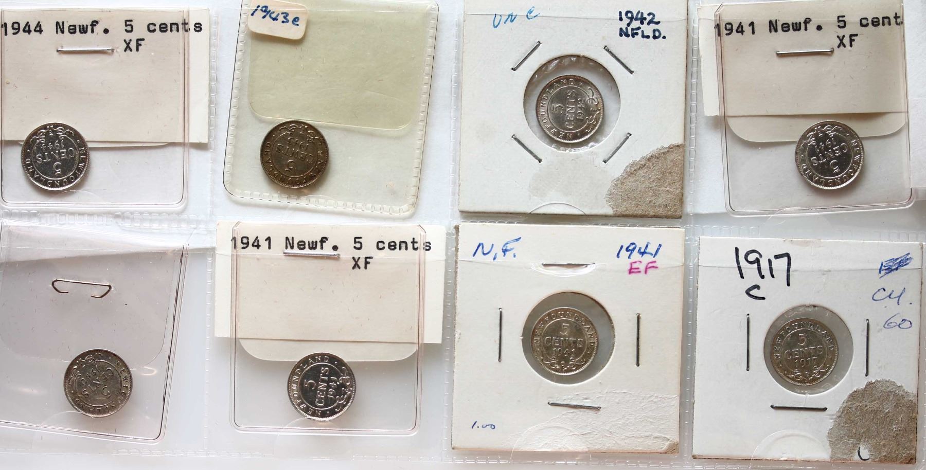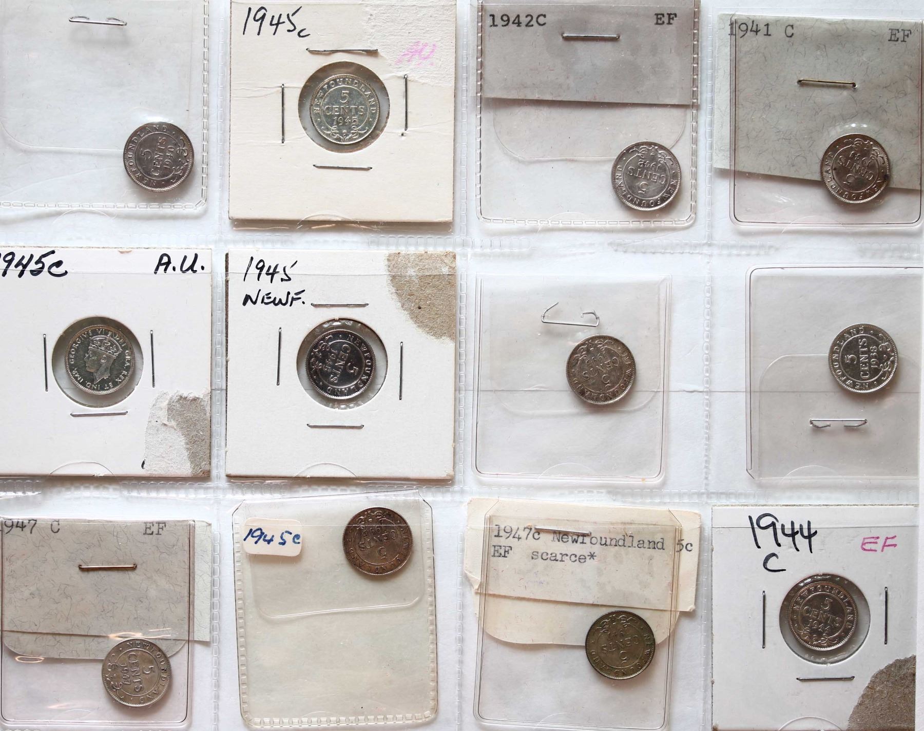 Nfld; 1938-1947c 5¢, VF to AU. Lot of 20 coins.