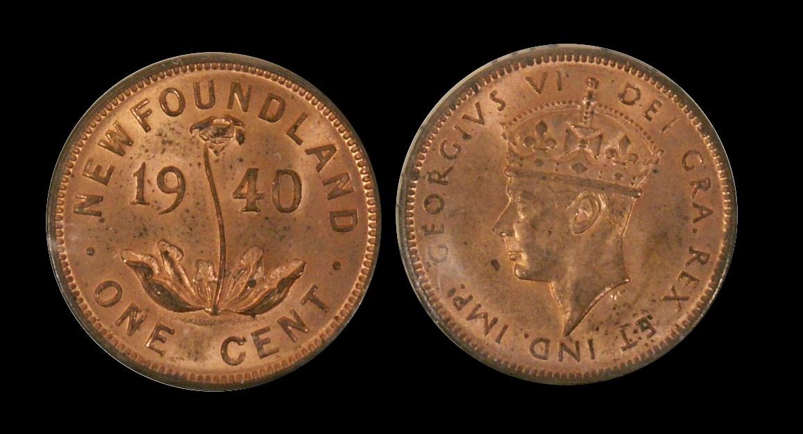 Nfld 1940 1¢ ICCS MS64 Red, a superb looking coin with frost