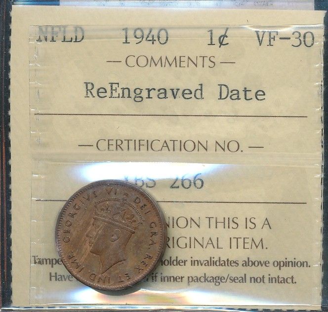 Nfld 1940 1¢ Re-eng ICCS VF30.