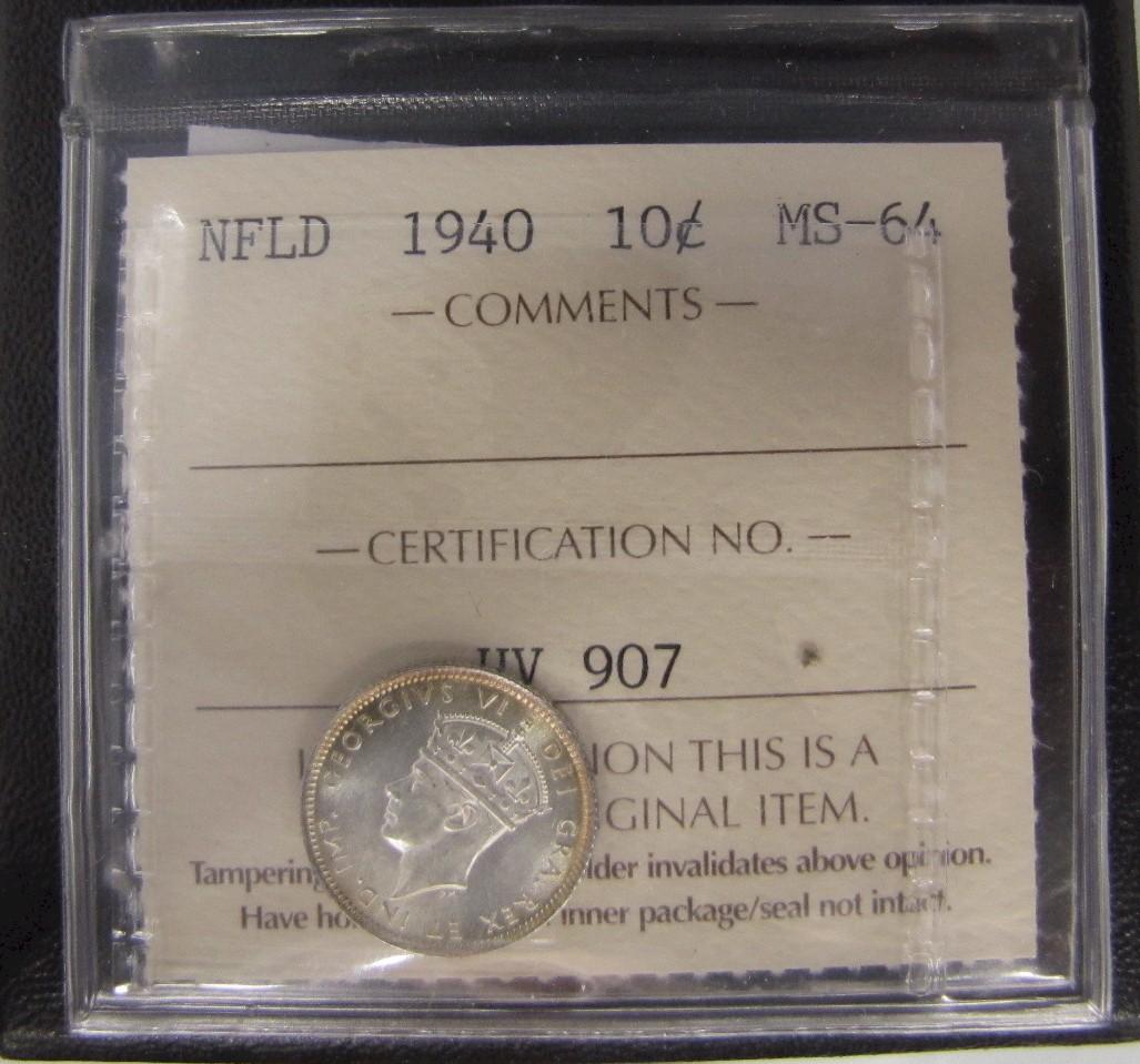 Nfld 1940 10¢ ICCS MS64. Lustrous white.