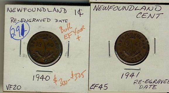 Nfld 1940, 1941 1¢ both Re-Engraved, EF-40